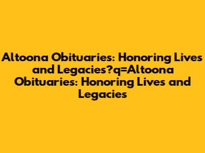 Altoona obituaries are a vital part of the community's fabric, serving as tributes to those who have passed and valuable resources for remembering lives and legacies. Whether you're seeking to honor a loved one, offer condolences, or conduct genealogical research, understanding how to find and interpret obituaries is essential. By using the resources and tips outlined in this guide, you can navigate Altoona obituaries effectively and with respect. Honoring the lives of those who have shaped our community is a meaningful way to preserve our history and connect with one another.