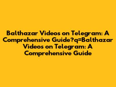 Balthazar Videos On Telegram: A Comprehensive Guide