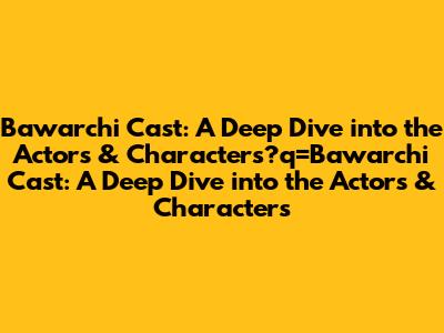 Bawarchi Cast: A Deep Dive Into The Actors & Characters