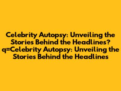 Celebrity Autopsy: Unveiling The Stories Behind The Headlines