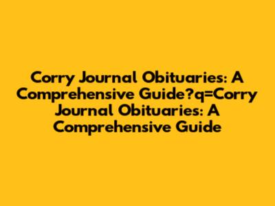 Corry Journal Obituaries: Your Guide To Local Tributes