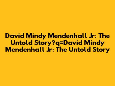 In conclusion, exploring the life of David Mindy Mendenhall Jr. offers a fascinating glimpse into the multifaceted journey of an individual shaped by a unique blend of experiences, challenges, and triumphs. From his early life and background to his personal and professional achievements, we have uncovered the layers that define him. His interests, hobbies, impact, and legacy further paint a comprehensive picture of his contributions and the mark he has left on the world. By examining these various aspects, we gain a deeper appreciation for the complexities and richness of a life lived, offering valuable insights and inspiration for our own journeys. This narrative serves as a testament to the power of personal stories and the profound impact each individual can have on the world around them.