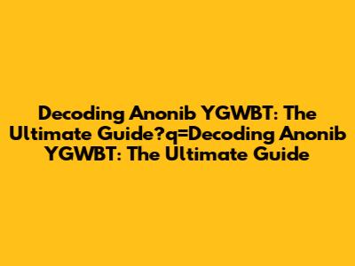 Decoding Anonib YGWBT: The Ultimate Guide
