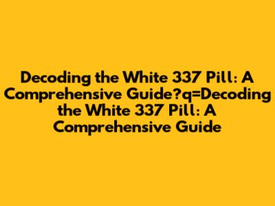 Decoding The White 337 Pill: Uses, Risks, And What You Need To Know