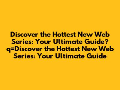 Discover The Hottest New Web Series: Your Ultimate Guide
