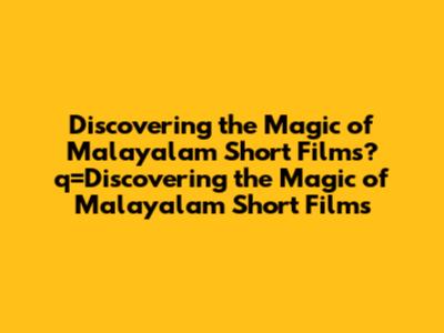 The Rise and Significance of Malayalam Short Films