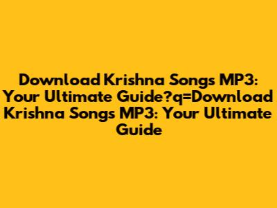 Download Krishna Songs MP3: Your Ultimate Guide