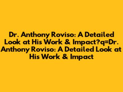 Dr. Anthony Roviso: A Detailed Look At His Work & Impact