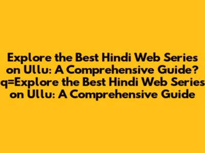 Explore The Best Hindi Web Series On Ullu: A Comprehensive Guide