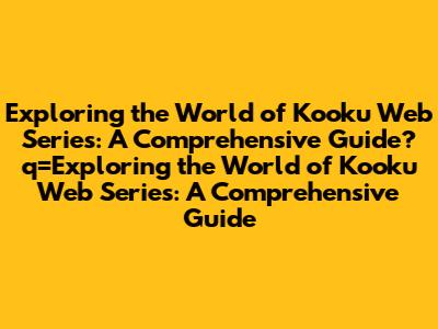 Exploring The World Of Kooku Web Series: A Comprehensive Guide