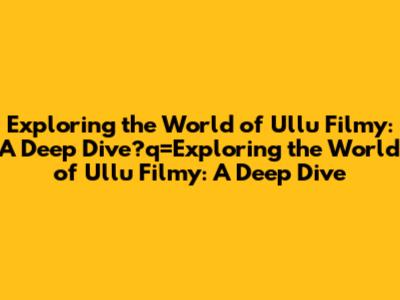Exploring The World Of Ullu Filmy: A Deep Dive
