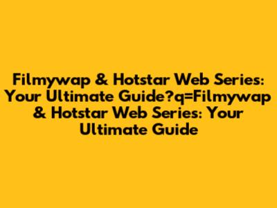 Filmywap & Hotstar Web Series: Your Ultimate Guide