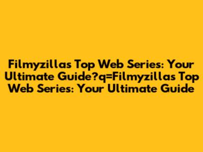 Filmyzilla's Top Web Series: Your Ultimate Guide