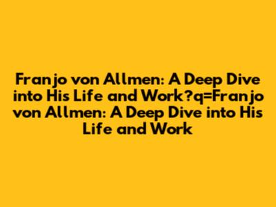 Franjo Von Allmen: A Deep Dive Into His Life And Work