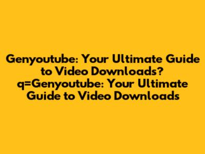 Genyoutube: Your Ultimate Guide To Video Downloads