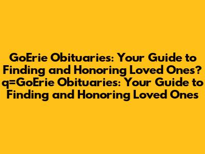 Q: Can I submit an obituary to GoErie? A: Yes, you can submit an obituary to the Erie Times-News through their online submission form or by contacting the obituary department directly. Funeral homes often assist with this process.