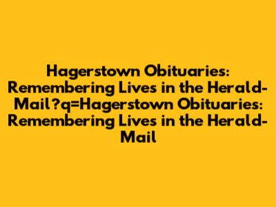 Hagerstown Obituaries: Remembering Lives In The Herald-Mail