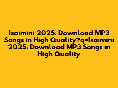 Are you a music lover looking for the latest Tamil MP3 songs? Look no further! Isaimini has been a popular platform for downloading Tamil songs, and if you're searching for Isaimini 2025 MP3 songs download, you've come to the right place. Let's dive into everything you need to know about Isaimini, its features, and how you can download your favorite tunes.