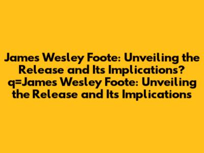 James Wesley Foote's release has sparked considerable interest and discussion, prompting a deep dive into the circumstances surrounding his case. This article aims to provide a comprehensive overview of the key aspects of Foote's release, including the legal proceedings, the context of his incarceration, and the potential implications of his freedom. The goal is to present a clear and accessible account of the events, examining the various factors that influenced the final decision. This also offers insights for those seeking a deeper understanding of the complexities of the criminal justice system. The details here are intended to be informative, offering a balanced perspective on a sensitive topic. It covers the history, the present situation, and potential future impacts. We will try to break down complex legal concepts and explore the key players involved, aiming for an understanding for both legal experts and the general public.