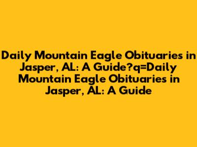 Welcome to your guide on finding Daily Mountain Eagle obituaries in Jasper, AL. Losing a loved one is incredibly difficult, and accessing information about their life and passing can be a crucial part of the grieving process. The Daily Mountain Eagle newspaper serves as a vital resource for the community, providing announcements of deaths, funeral arrangements, and memorial services. This article aims to help you navigate the process of finding and understanding obituaries, offering valuable insights and practical tips to make this challenging time a little easier. We will explore how to access obituaries, the types of information typically included, and other related resources that can offer support during bereavement. Understanding the importance of these announcements and how to find them can provide comfort, closure, and a way to honor the lives of those we have lost. Let's explore how the Daily Mountain Eagle provides this essential service to the community of Jasper, AL, and the surrounding areas. This information is very important for those who are seeking to honor their loved ones.