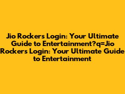 Jio Rockers Login: Your Ultimate Guide To Entertainment
