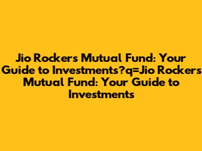 What is Jio Rockers Mutual Fund? Unveiling Investment Opportunities