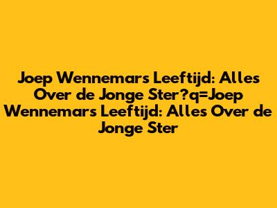 Joep Wennemars Leeftijd: Alles Over De Jonge Ster