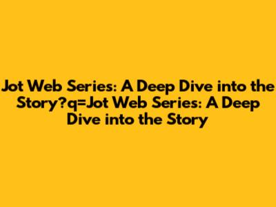 Jot Web Series: A Deep Dive Into The Story