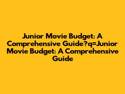 Q: How much should I budget for a junior movie? A: The budget for a junior movie can vary widely depending on the scope and ambition of the project. It can range from a few hundred dollars to several thousand dollars. Start by breaking down your script and estimating costs for each element. Utilize free budgeting templates and software to help you create a detailed budget.