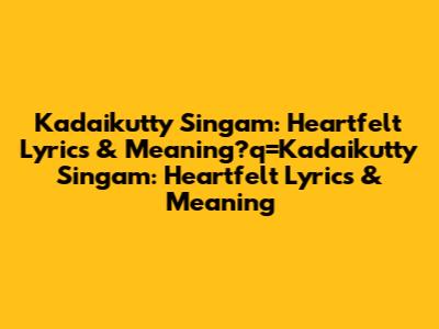 Kadaikutty Singam: Heartfelt Lyrics & Meaning