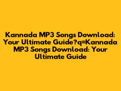 Q: Is it legal to download Kannada MP3 songs? A: Yes, if you download from legal sources such as streaming platforms with download options (Spotify, Apple Music) or online music stores (Amazon Music, Google Play Music). Downloading from unauthorized sources is illegal and infringes copyright laws.