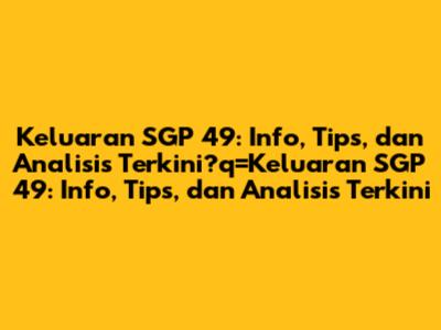 Keluaran SGP 49: Info, Tips, Dan Analisis Terkini