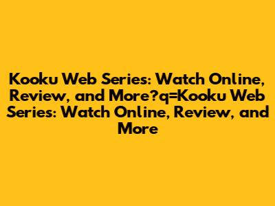 Kooku Web Series: Watch Online, Review, And More
