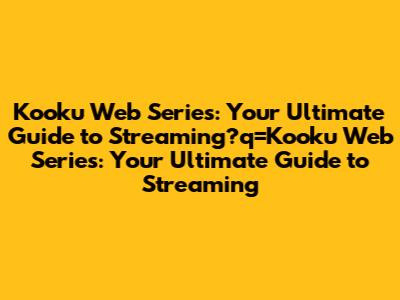 Kooku Web Series: Your Ultimate Guide To Streaming