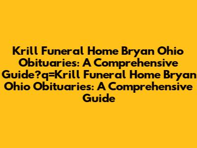 Krill Funeral Home Obituaries: Bryan, Ohio - A Comprehensive Guide