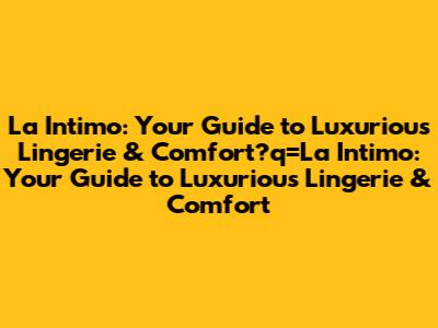 La Intimo: Your Guide To Luxurious Lingerie & Comfort