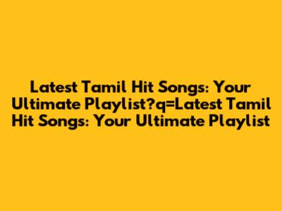 Latest Tamil Hit Songs: Your Ultimate Playlist