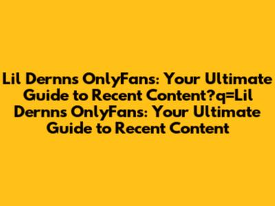 Lil Dernn's OnlyFans: Latest Content & Exclusive Insights