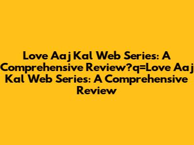 Love Aaj Kal Web Series: A Comprehensive Review