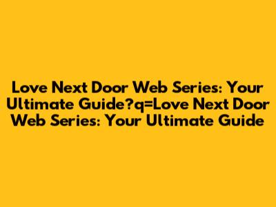 Love Next Door Web Series: Your Ultimate Guide