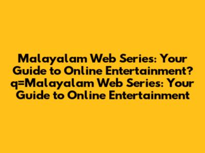 Q: Where can I watch Malayalam web series online? A: You can watch Malayalam web series on various streaming platforms, including Amazon Prime Video, Netflix, ManoramaMAX, and Saina Play.