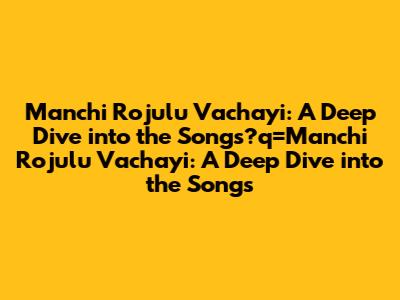 Manchi Rojulu Vachayi: A Deep Dive Into The Songs