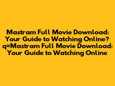Mastram Full Movie Download: Find It Online