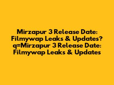 Mirzapur 3 Release Date: Filmywap Leaks & Updates