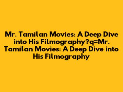 Mr. Tamilan Movies: A Deep Dive Into His Filmography