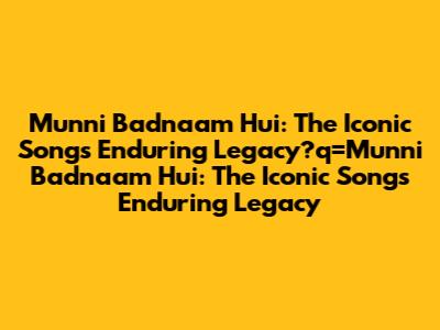 Munni Badnaam Hui: The Iconic Song's Enduring Legacy