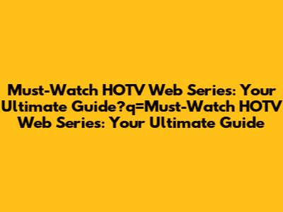 Must-Watch HOTV Web Series: Your Ultimate Guide