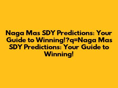Naga Mas SDY Predictions: Your Guide To Winning!