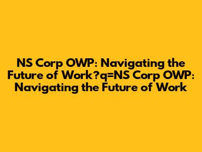 Are you ready to dive into the world of NS Corp's OWP? Let's explore what it means and how it's shaping the future of work. This guide will walk you through everything you need to know in a simple, engaging way.