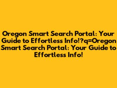 Oregon Smart Search Portal: Your Guide To Effortless Info!